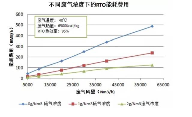 下图是风量、浓度不同时的RTO能耗费用估算值。