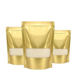 Custom Food Grade Gold Stand-Up Resealable Zipper Pouches with Clear Window and Custom Logo for Food Storage 阅读更多 "